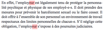 Inclusion féministe angélique. Hélas, on ne peut pas exclure qu'une employeuse néglige de protéger ses employé·e·s contre le harcèlement sexuel (03-2018)